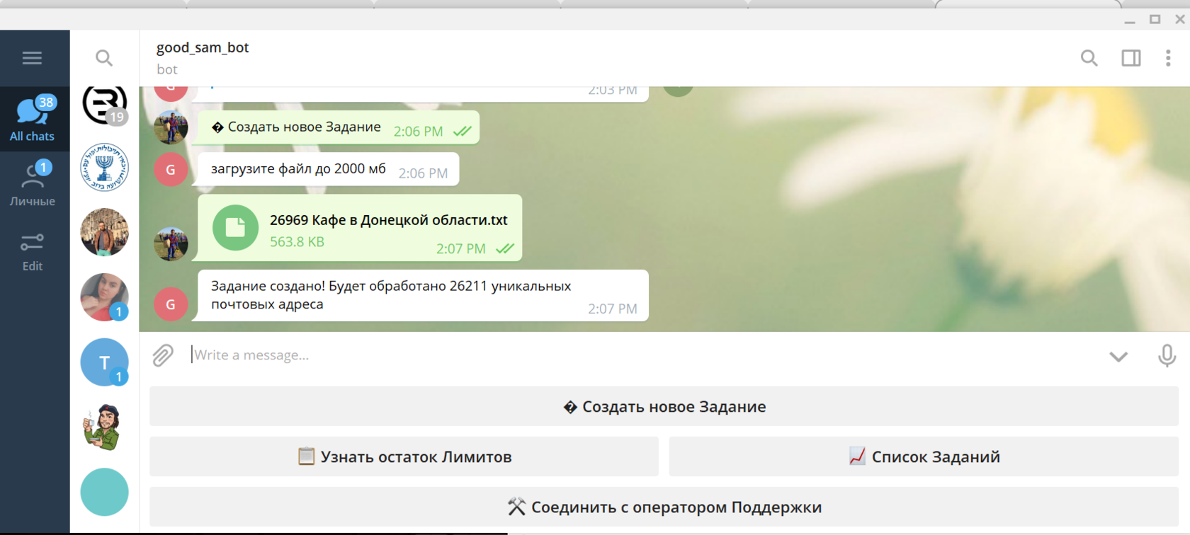 Загружайте файлы до 2ГБ (~9 миллионов) писем за раз. Добавляйте автоматизированные задания в telegram бота. Поддерживаемые форматы: файлы .txt и .csv. Перед отправкой на проверку не нужно делать предварительную «очистку», чтобы удалить известные плохие домены и недопустимый синтаксис, мы сделаем это бесплатно. Ваши файлы могут содержать несколько столбцов данных.